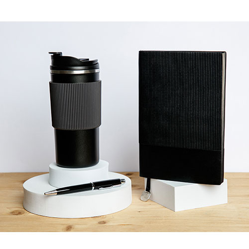 Elegantan muški set u poklon kutiji, termos, notes i hemijska olovka kao savršen spoj za poklon set.