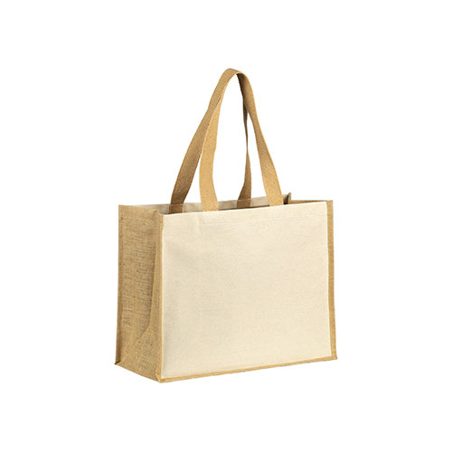 Plaćna torba od kombinacije jute i pamuka, sa velikom površinom za štampu logotipa, sa dugačkim ručkama za nošenje